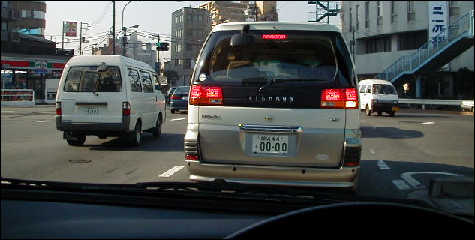 (2) 前方が見えないので、左に進路を変え、前の車の左側方に並んで右折